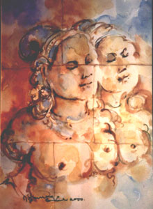 Just across from your room you will find Nyoman’s painting collection in three main media (water colours, oil and batik)